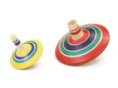 Start the big top spinning and then place the smaller top and watch them go!
