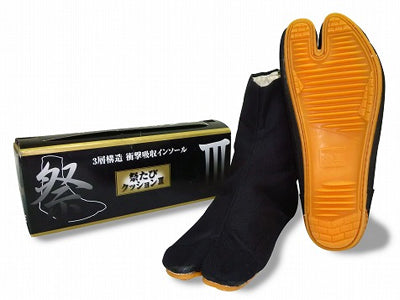 This jikatabi has a triple-cushion insole, designed for people who spend a lot of time on their feet - a 3mm sponge cushion, a 7mm EVA cushion and a 5mm shock absorbing layer in the heel.