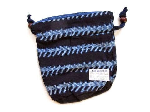 This is a traditional "aizome", or indigo dyed, cotton kinchaku drawstring bag.