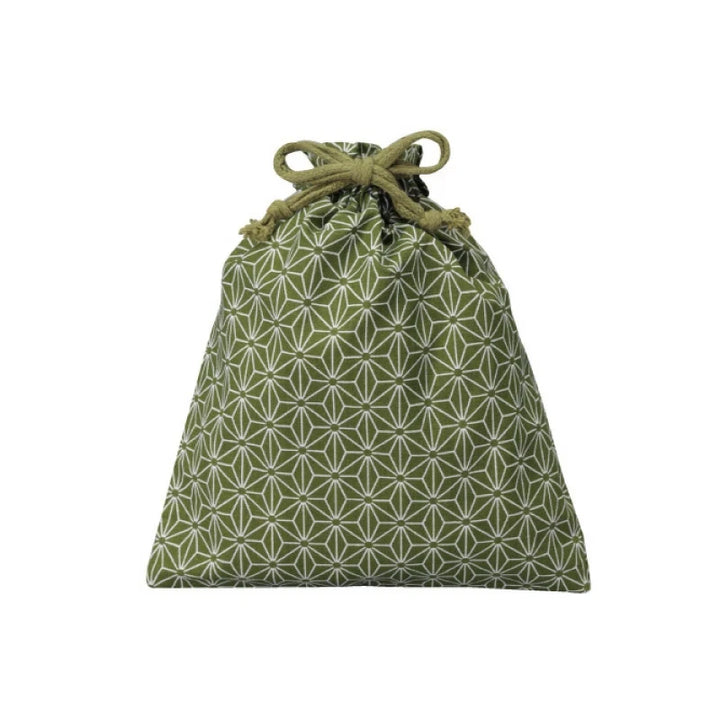 This is a traditional cotton kinchaku drawstring bag. It has a waterproof vinyl lining to prevent wet items from seeping out.