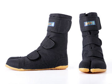 Unfortunately, the "magic" in this product name doesn't refer to special powers they will give you. Other than maybe the power to turn heads and gets all sorts of compliments. Magic is the Japanese word for velcro, which is what these jikatabi use instead of those fiddly kohaze clasps. The safety is for your toes, which are protected by a reinforced resin toe cap. Three velcro straps across the front give this model a very distinctive look as well as a snug fit.