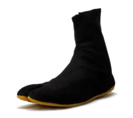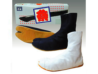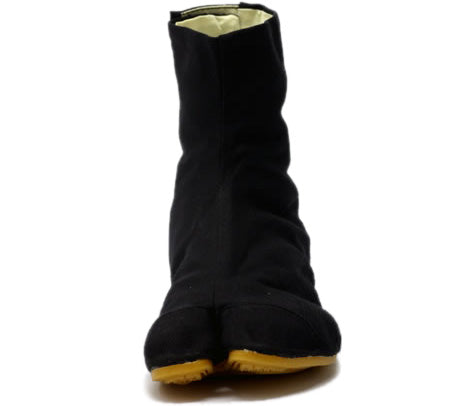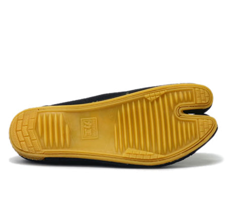 This jikatabi has a double cushion insole, designed for people who spend a lot of time continuously on their feet - a 3mm sponge cushion, a 3mm EVA cushion, and a cushion gel layer in the heel. It comes in black or white and has 7 metal tabs (kohaze) and four adjustable widths to ensure a snug fit. 100% cotton with cotton lining and a lightweight and flexible rubber sole. All the stitching is reinforced so the seams are strong and durable.