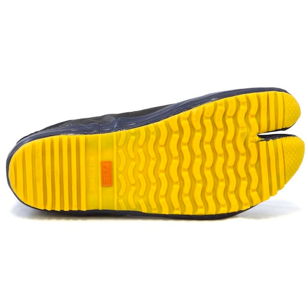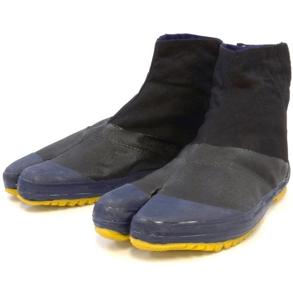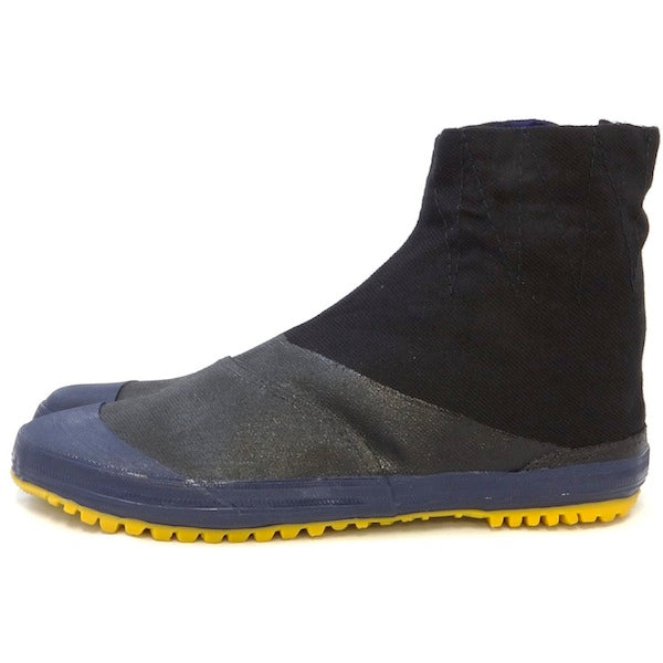 Related to the Hadashi model, jitsuyo means practical. These boots are made for working in the water, with a rubber toe cap and extensive waterproof coating on the uppers. It has 5 metal tabs (kohaze) and four adjustable widths to ensure a snug fit. 100% cotton with a flexible-rubber, non-slip sole and a rubber strip between the sole and upper for added waterproofing. Aquamarine cotton lining and the insole is a thick cotton padding. All the stitching is reinforced so the seams are strong and durable.