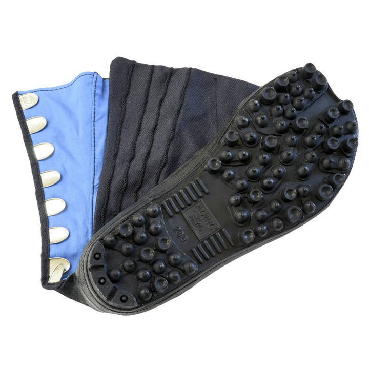 Soukaido make very sturdy work boots. This jikatabi type has rubber "spikes" on the sole; protective padding for the ankles; 8 kohaze (tabs) and four adjustable widths for a perfect fit; a tough but flexible rubber sole.