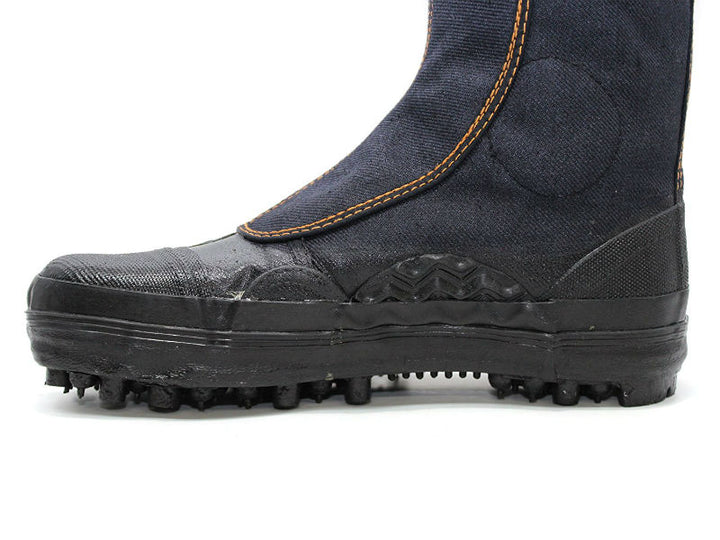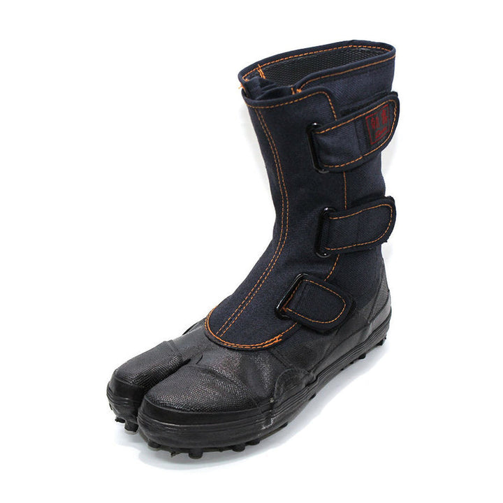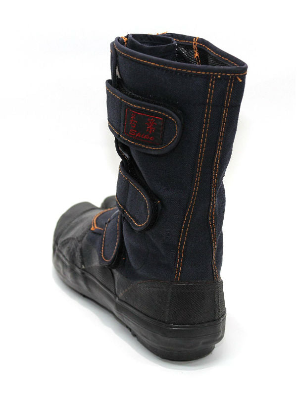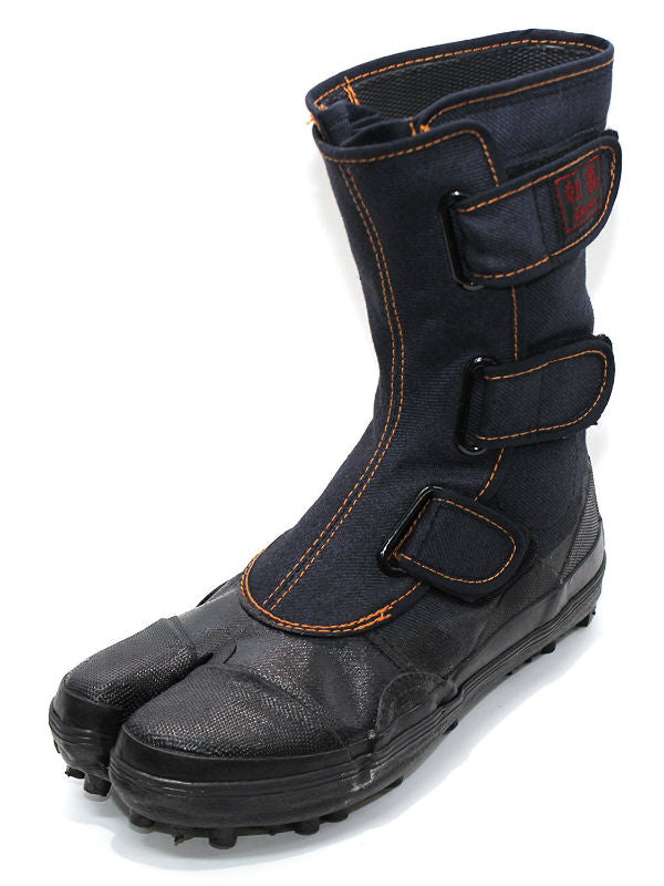 Soukaido make very sturdy work boots. This jikatabi type has rubber-coated metal "spikes" on the sole; protective padding for the ankles; three velcro fasteners for convenience and a perfect fit; a tough but flexible rubber sole. It comes in an EEE width.