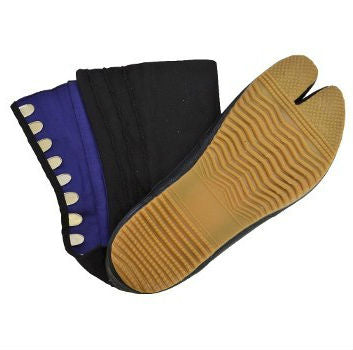 Reinforced cotton uppers with rubber non-slip soles and rubber protection around the toe. With 10 flexible kohaze fasteners for a perfect fit.
