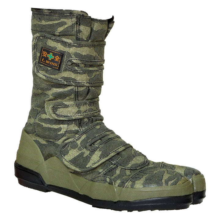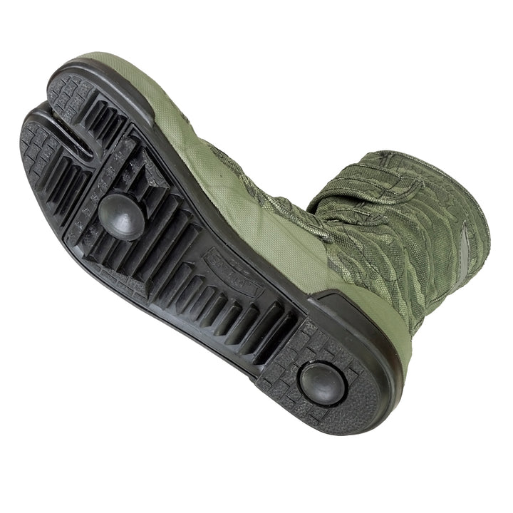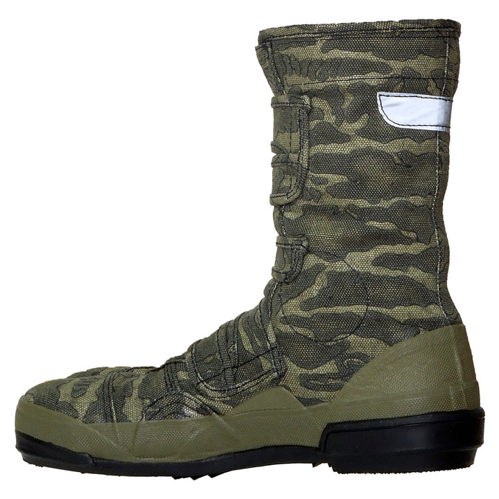 A new camo version of the popular VO-80 model. With their patented steel toe caps, these jikatabi are as solid as they look. With protective padding for the ankles and flexible velcro fasteners for convenience and a perfect fit. And the reflective strip on the rear is a nice touch.