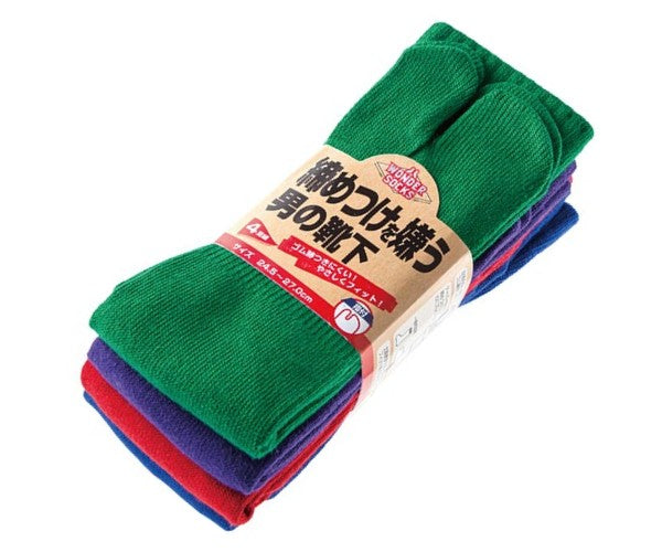 These heavy duty size vivid color tabi socks are ideal for any situation and essential for wearing with Japanese jikatabi or sandals. Cotton/nylon blend with extra support for the arches and calves. Pack of 4 pairs. Mid-calf height.