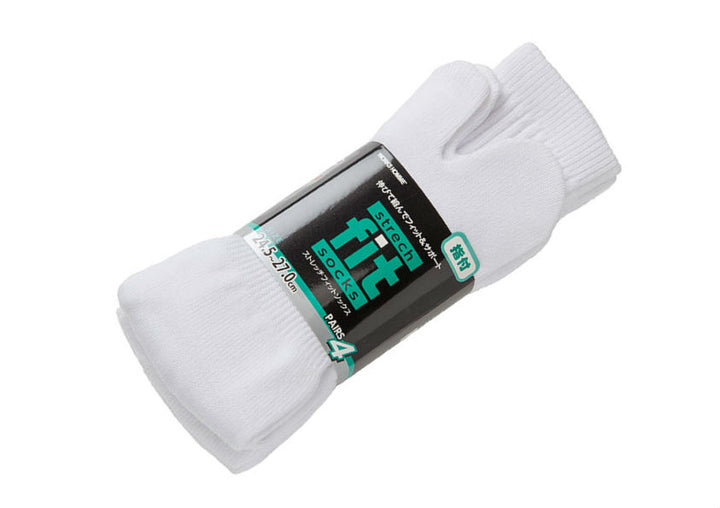 These white cotton tabi socks are ideal for wearing with jikatabi or any footwear. 100% cotton with extra support for the arches and calves. Mid-calf height.