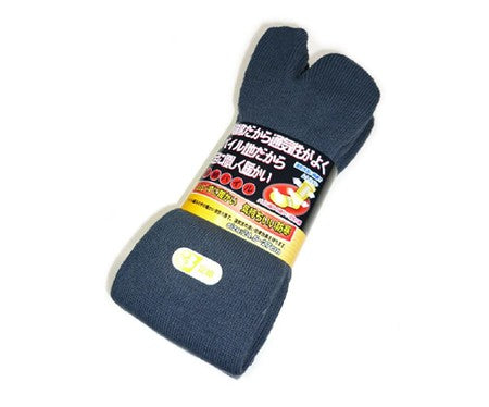 These socks have a split for the large toe so that they may easily and comfortably be worn with various Japanese footwear including tabi, jikatabi and sandals. The separation of the big toe is said to have health benefits as the flexing of the big toe both relaxes and stimulates the brain.