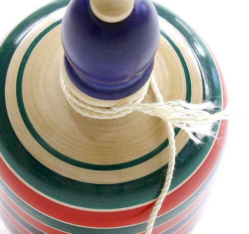 Due to the opening in its side, this hand-made koma (spinning top) makes a naru (animal cry) noise as it spins! Spin the top with the attached string.