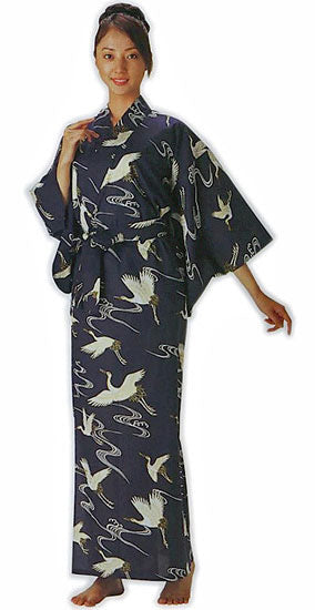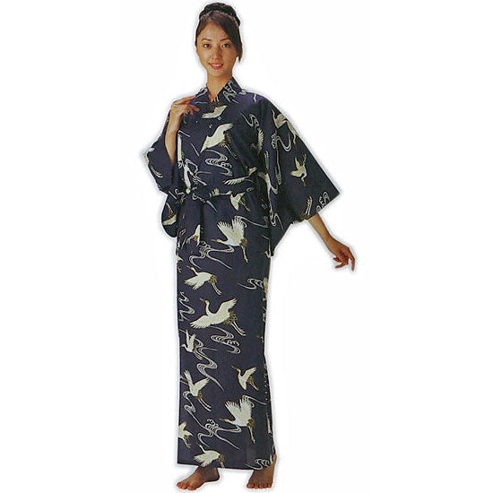 This yukata has features a beautiful pattern of the crane, Japan's symbolic bird, against a black background.