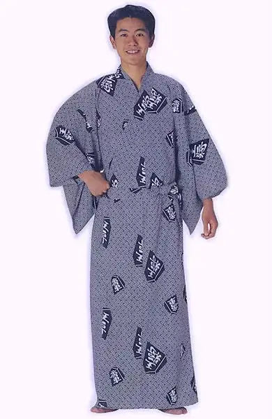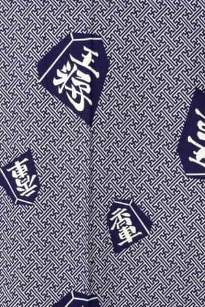 This yukata features a simple pattern of shogi tiles. Shogi is Japan's traditional board game, similar to chess.
