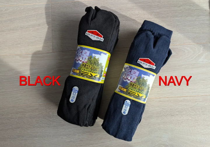 Diese marineblauen Tabi-Socken in robuster Größe sind ideal für jede Situation und unverzichtbar zum Tragen mit japanischen Jikatabi oder Sandalen. 100 % Baumwolle mit zusätzlicher Unterstützung für das Fußgewölbe und die Waden. Kniehöhe.