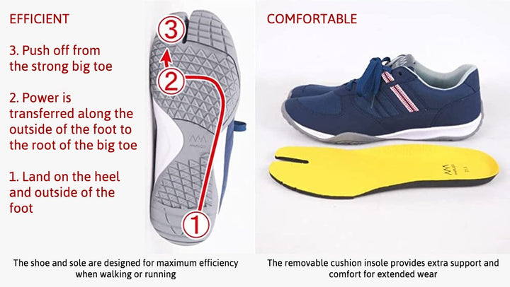 Dieses Modell vereint die Flexibilität und Ausgewogenheit von Jikatabi mit der Form und Passform eines Sneakers und ist eine Neuveröffentlichung für 2022. Äußerst angenehm zu tragen, insbesondere durch die herausnehmbare gepolsterte Innensohle. Gerillte, rutschfeste Gummisohle. Mit Mesh-Gewebe für Atmungsaktivität und stilvollem Design.