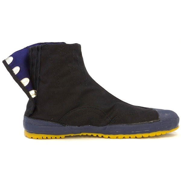 Es verfügt über 5 Kohaze-Metallverschlüsse und vier verstellbare Breiten, um eine gute Passform zu gewährleisten. 100 % Baumwolle mit flexibler, rutschfester Gummisohle und einem Gummistreifen zwischen Sohle und Obermaterial für zusätzliche Wasserdichtigkeit. Marineblaues Baumwollfutter und die Innensohle ist eine dicke Baumwollpolsterung. Alle Nähte sind verstärkt, sodass die Nähte stark und langlebig sind.