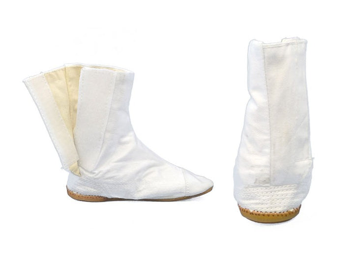 Diese Jikatabi sind genau die gleichen wie die in Originalgröße, außer dass sie Klettverschlüsse anstelle der umständlicheren Laschen (Kohaze) verwenden. Dadurch sind sie viel kinderfreundlicher. Mit zusätzlicher Polsterung in der Innensohle für mehr Komfort. Erhältlich in Schwarz oder Weiß und je nach Größe in zwei Höhen – wir verwenden die Anzahl der unten aufgeführten Tabs nur, um eine Vorstellung von der Stiefelhöhe zu geben.