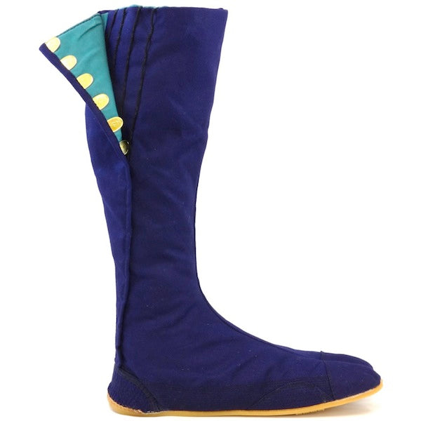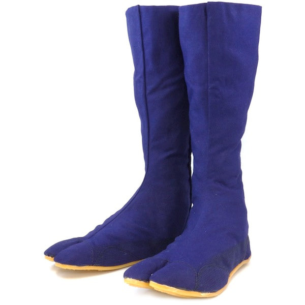 Diese Jikatabi sind im Wesentlichen die gleichen wie das Fighter-Modell, haben jedoch die Farbe Violett/Marineblau. Flexibel, leicht, langlebig und äußerst komfortabel. Sie verfügen über 15 Metallverschlüsse (Kohaze) mit vier Weitenbeschlägen für eine perfekte Passform. Der Trennung des großen Zehs werden gesundheitliche Vorteile zugeschrieben, da das Beugen des Zehs sowohl entspannt als auch das Gehirn stimuliert.