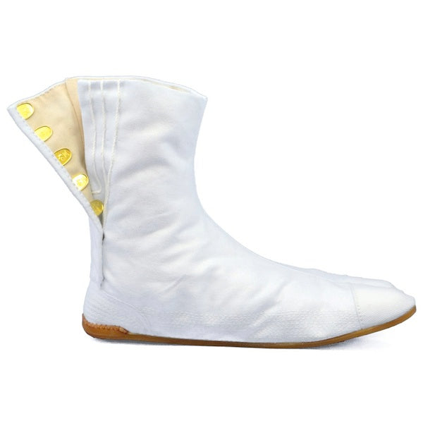 Dieser Jikatabi ist eine weiße Version des meistverkauften Fighter-Modells. Es wird mit 7 Metalllaschen (Kohaze) und vier verstellbaren Breiten geliefert, um eine gute Passform zu gewährleisten.