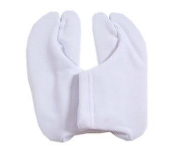 Diese Stretch-Tabi haben den gesamten Stil traditioneller Tabi, ohne den Aufwand von Kohaze-Haken und -Laschen. Sie sind in fünf Größen erhältlich und der Stoff ist so dehnbar, dass sie für verschiedene Schuhgrößen geeignet sind. Die Tabi sind außerdem praktischerweise maschinenwaschbar. Weiß mit weißer Sohle.