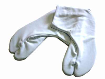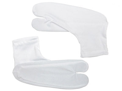 Diese Stretch-Tabi haben den gesamten Stil traditioneller Tabi, ohne den Aufwand von Kohaze. Sie sind in zwei Größen erhältlich und der Stoff ist so dehnbar, dass sie für verschiedene Schuhgrößen geeignet sind. Die Tabi sind außerdem praktischerweise maschinenwaschbar. Weiß mit weißer Sohle.