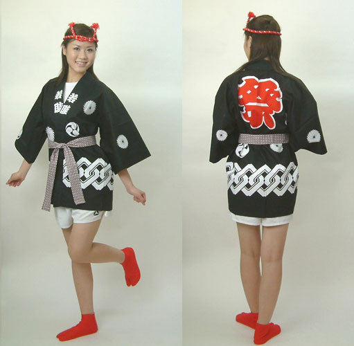 Ein Happi ist eine kurze Baumwolljacke mit weiten Ärmeln, die mit einer Schärpe um die Taille gebunden wird. Sie wird heute in Japan hauptsächlich zu festlichen Anlässen getragen. Es ist normalerweise einfarbig, typischerweise blau, mit einem aufgedruckten Symbol auf dem Revers und auf der Rückseite. Der Happi-Mantel ist das traditionelle Kostüm, das heute von Japanern genauso getragen wird wie der Kimono, wenn nicht sogar noch mehr.