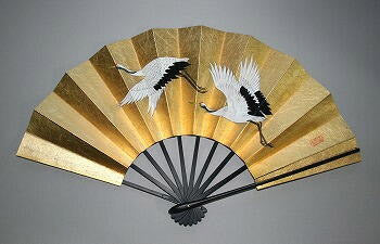 Dieser große Fächer wird in Kyoto von dem renommierten Künstler Tomokazu Kurashima handbemalt und handgefertigt. Es ist auf beiden Seiten mit eindrucksvollen natürlichen Bildern bemalt, die den Wechsel der Jahreszeiten widerspiegeln. Dieser Fächer ist einer unserer Bestseller und zeigt auf der einen Seite das Design von zwei eleganten Kranichen und auf der anderen Seite Bilder von Kiefern-, Bambus- und Pflaumenbäumen. Mit mehreren im Wesentlichen japanischen Elementen ist dieser Fächer im wahrsten Sinne des Wortes ein Klassiker.