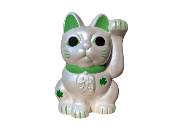 Die Maneki Neko (winkende Katze) ist ein sehr beliebtes Glückssymbol und wird normalerweise am Eingang eines Hauses oder Geschäfts platziert. Die erhobene rechte Hand bringt Geld, während die weiße Farbe Glück bringt.