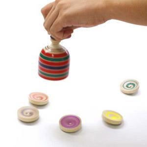 Platzieren Sie die fünf Miniatur-Koma (Kreisel) im Inneren des großen „Mutterschiffs“. Legen Sie es vorsichtig auf die Oberfläche und drehen Sie es mit der befestigten Schnur. Leben Sie sanft und beobachten Sie, wie die UFOs herausfliegen.