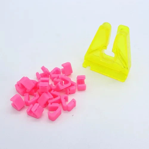 A refill set of 20 plastic clips for water yoyos plus the stand for attaching the clips.