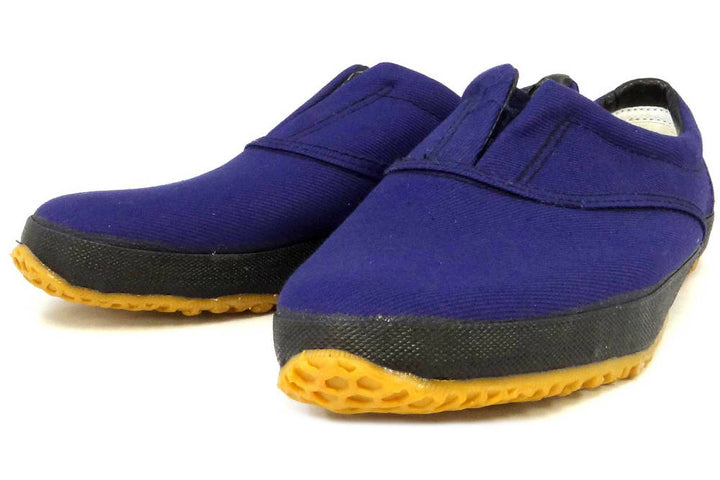 Jikatabi mit abgerundeten Zehen, die einfach und schnell an- und ausgezogen werden können. Gepolsterte Innensohle und rutschfeste Sohle. Beliebt als Arbeitsschuhe in Japan.