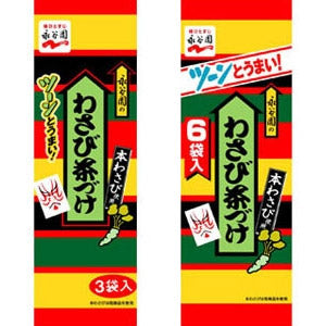 Chazuke aromatisé au wasabi de Nagatanien. Contient du wasabi, du nori et de l'arare conservés au sel. Livré en paquets de 3 ou 6 sachets. Il suffit de verser un sachet sur un bol de riz bouilli et d'ajouter de l'eau chaude pour préparer un plat délicieux et sain.