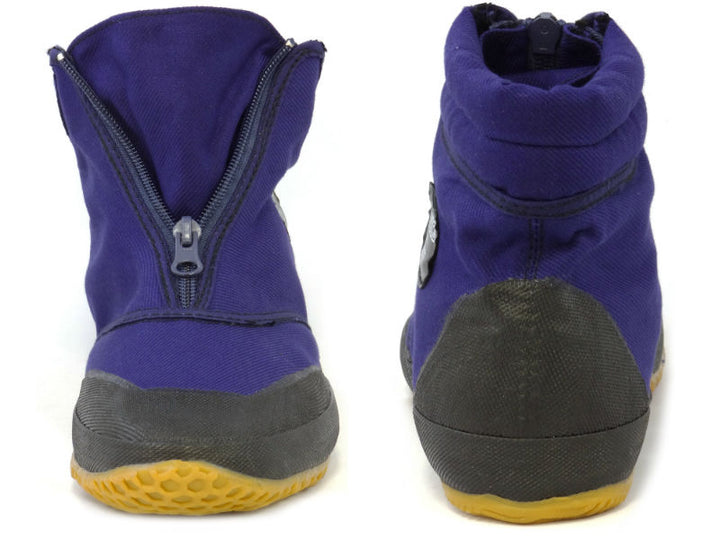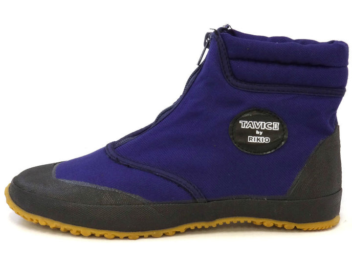 Une version montante du populaire jikatabi à bout rond de Rikio. Dotés d'une fermeture éclair, ils peuvent être enfilés et retirés facilement et rapidement. Semelle intérieure coussinée et semelle antidérapante. Populaires comme chaussures de travail au Japon.