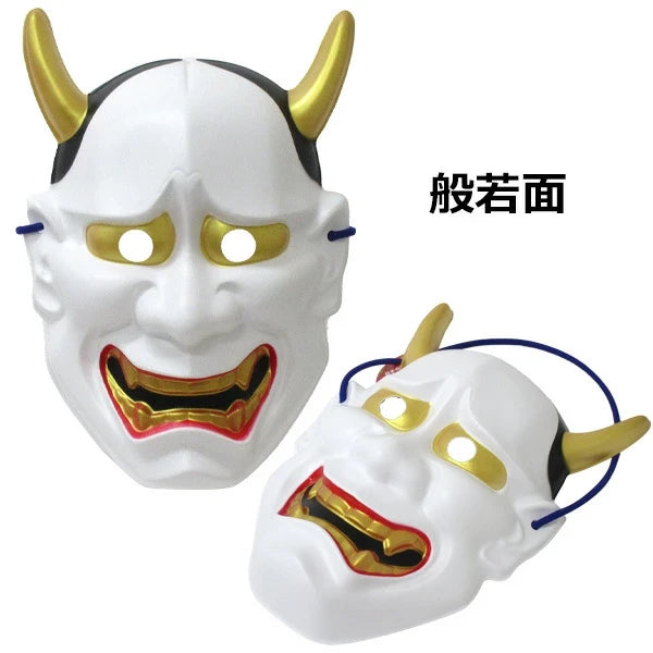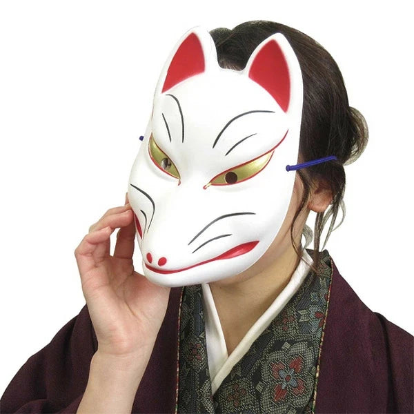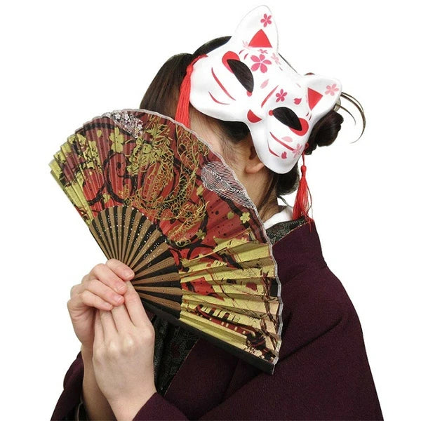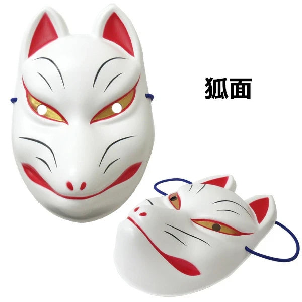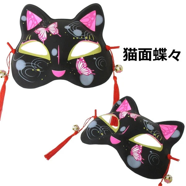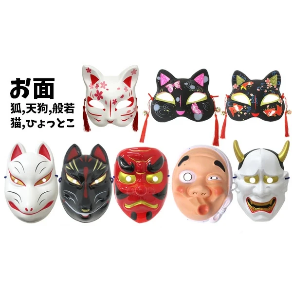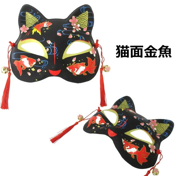 A selection of Japanese masks featuring characters from traditional theatre, such as the Hanya demon or the Kitsune (fox), or cats with traditional motifs such as the Sakura (cherry blossom) or Kingyo (goldfish). Ideal for Halloween, cosplay or fancy dress parties.