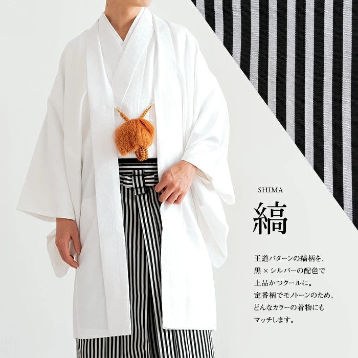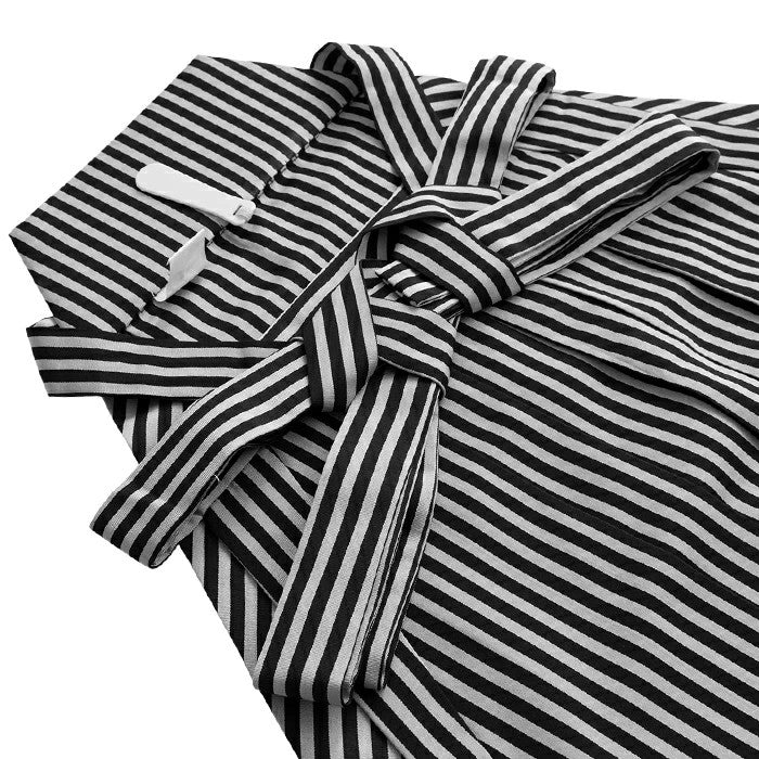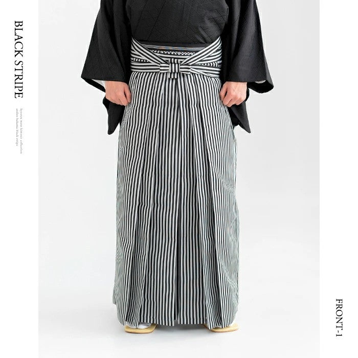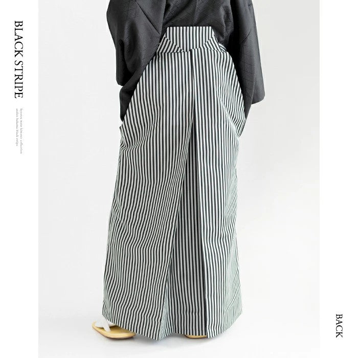 This black & silver striped hakama looks spectacular worn over a black, white or grey kimono. It comes in five sizes/lengths. It is made of machine washable polyester.