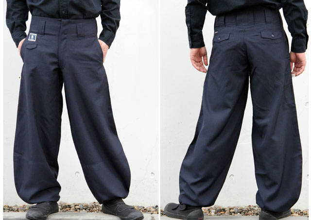 These are the classic "tobi" pants as worn by construction workers across Japan. "Chocho Long" refers to the "very, very long" inseam, while the "hachibun" refers to the 8/10 of the pants that are baggy. With their distinctive baggy style they make a real fashion statement. Comes in six waist sizes and five colors.
