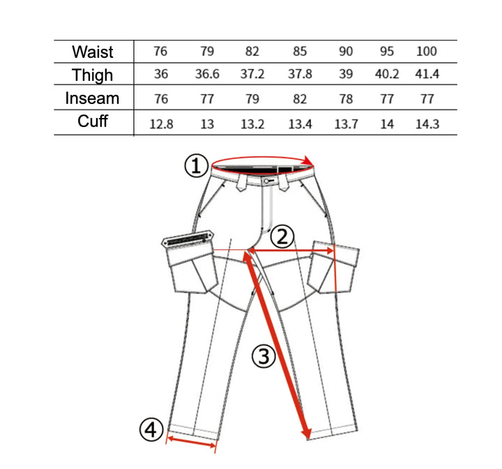 Sizes: Waist = 76cm - 100cm. Inseam = 76 - 82cm.
